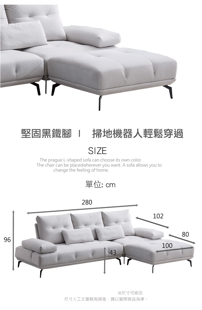 尺寸說明:單位/CM:長280 / 深 102 / 總高 96