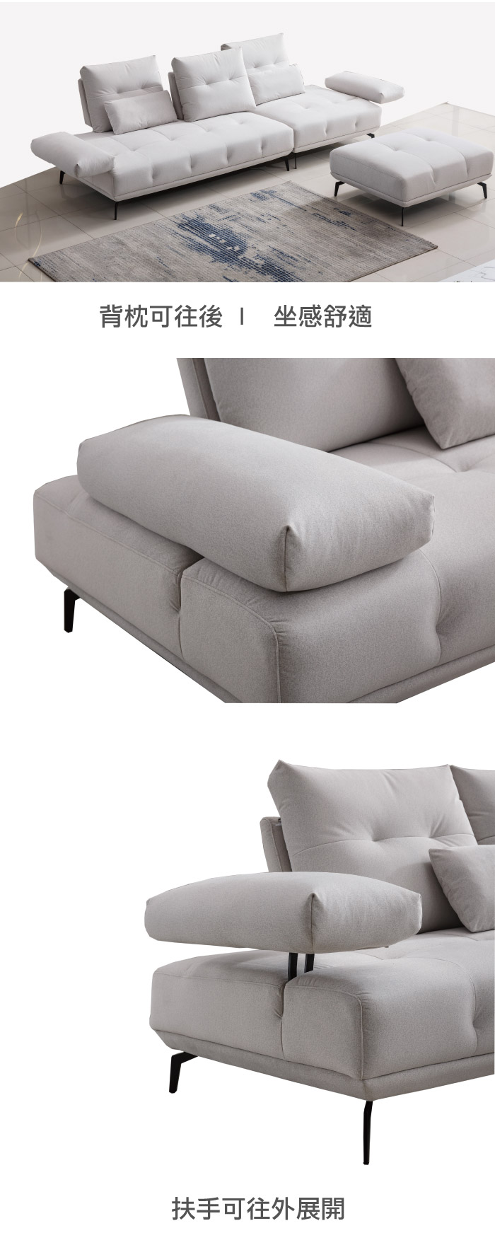 舒適角度,讓你得到更大限度享受.背枕可往後調整 坐起來更舒適自在 更特別是扶手也可以往外展開 。