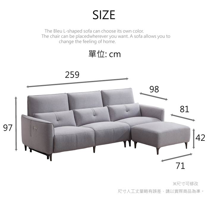 尺寸說明:單位/CM:長259 / 深 98 / 總高 97