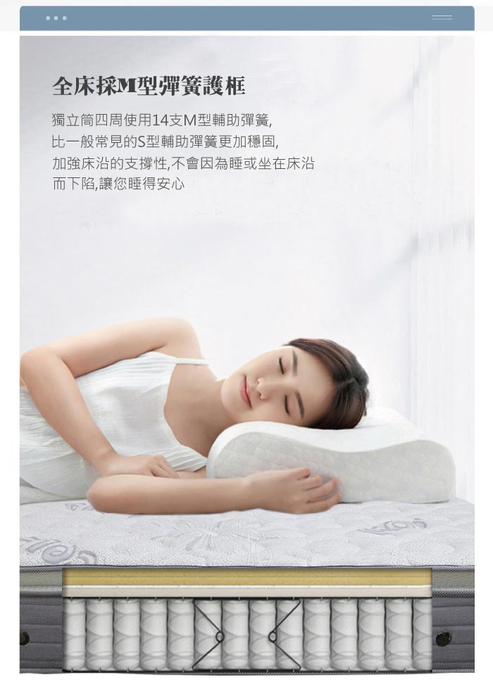 ★獨立筒床墊總共14支M型輔助弓-4周不易塌陷