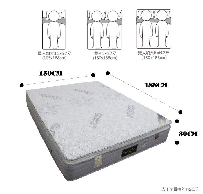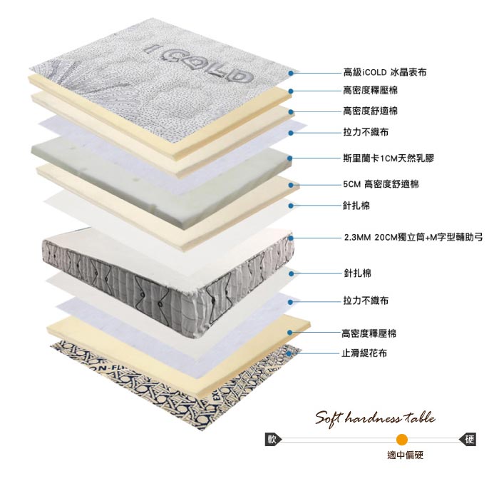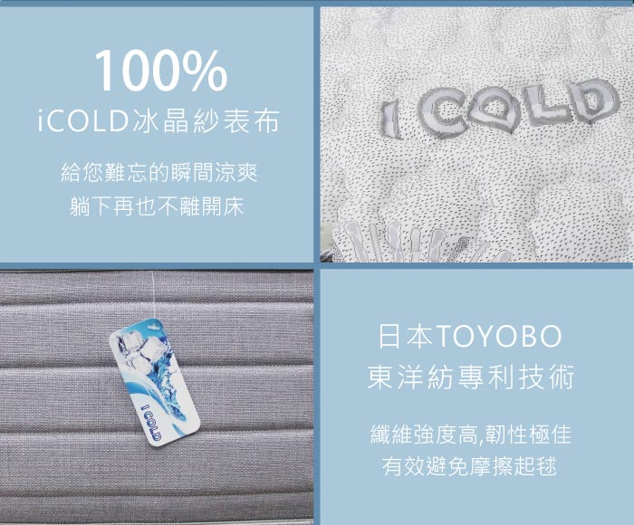 材質說明:日本進口ICOLD冰晶紗表布.中鋼獨立筒.高密度海棉.1公分斯里蘭卡乳膠