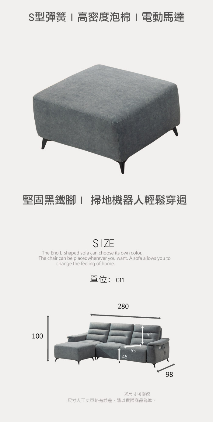 商品名稱:【AISHA】伊諾電動貓抓布L型布沙發 2308