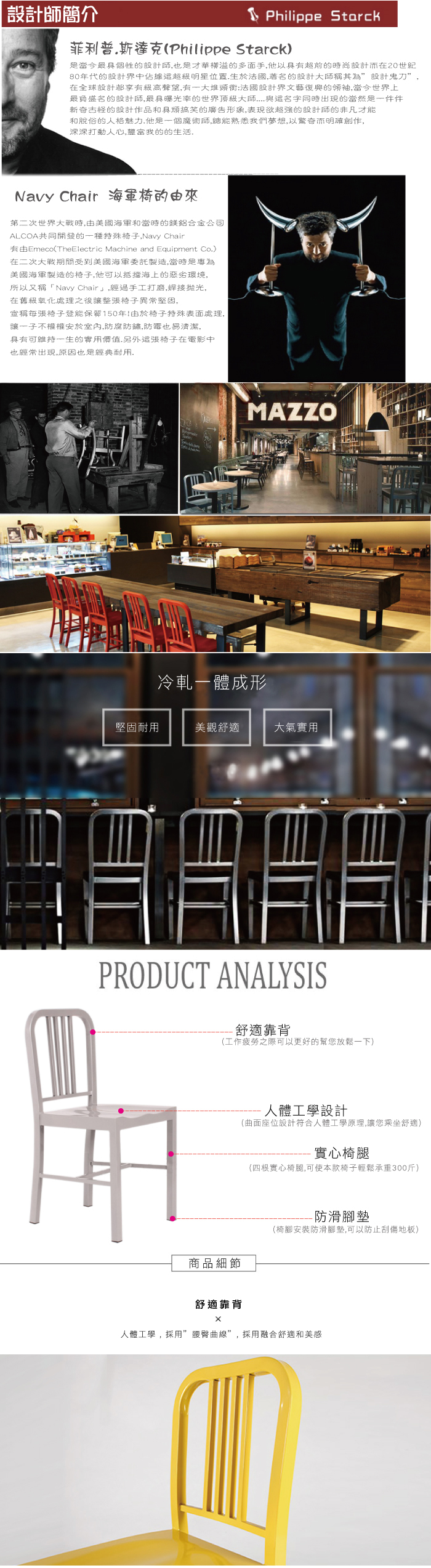 【AISHA】伯爾尼 Loft工業風餐椅,Loft工業風餐椅(海軍椅),源自第二次世界大戰美國為海軍製造的一張餐椅,Loft工業風餐椅(海軍椅)由於餐椅特殊表面處理讓餐椅有另一實用價值,另外這餐椅在電影中也經常出現,原因是經典耐用!Loft工業風餐椅(海軍椅)的餐椅舒適得靠背,人體工學採"腰臀曲線"融合美感,貼心椅面,光滑,弧度圓滑,為您打造舒適坐感。