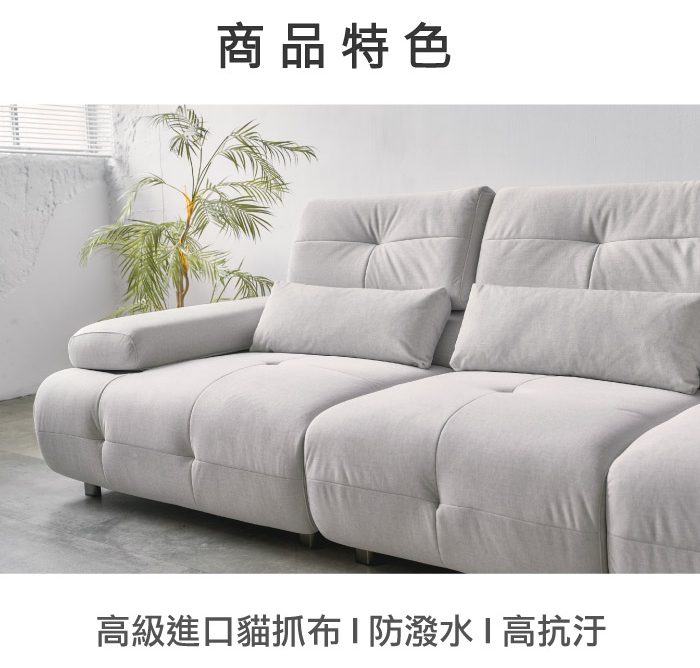 貓抓布面料,觸感柔軟舒適,層次豐富.防潑水.抗汙.耐磨.耐刮.最適合毛小孩了.