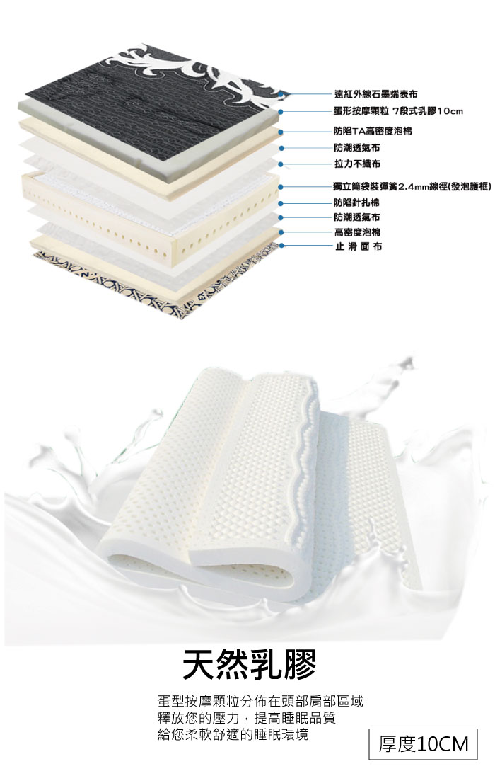 材質說明:石墨烯舒柔表布.中鋼獨立筒.高密度泡綿 .10公分乳膠