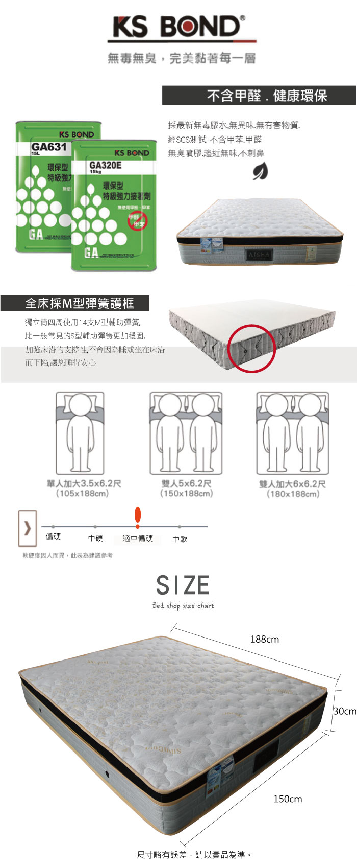材質說明:涼感 +銀離子表布.中鋼獨立筒.高密度海棉.