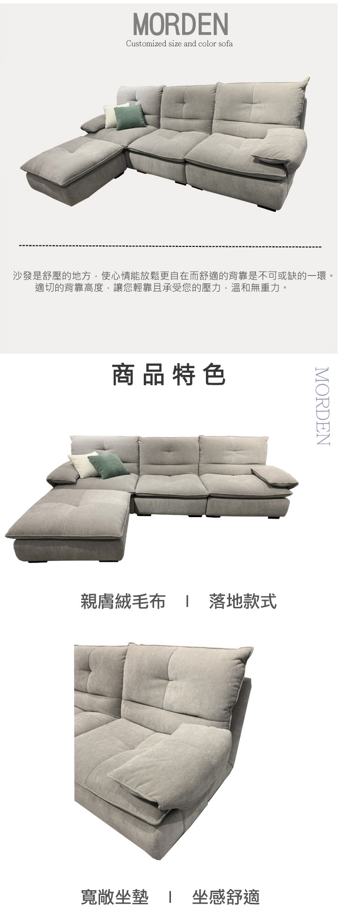 墨登絨布L型布沙發 ,高品質沙發,創造更高品質貓抓布沙發.沙發材質解析:1.實木框架;結實.承重強.耐用2.高密度泡棉;高回彈.不變形.不塌陷3.4.面料;柔軟有韌性.透氣親膚