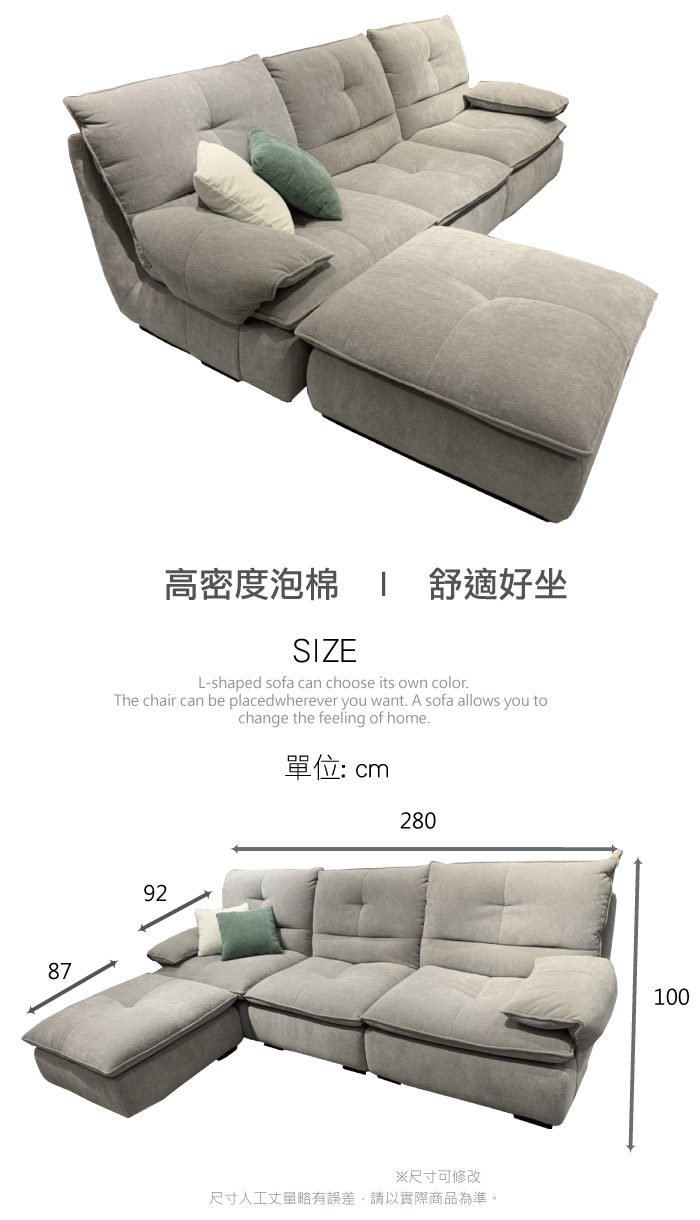 尺寸說明:單位/CM:長280 / 深 92 / 總高 100