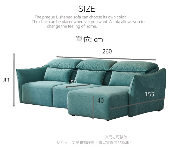 尺寸說明:單位/CM:長260 /深105 / 總高 83