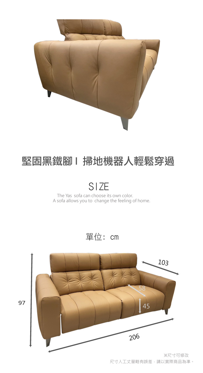尺寸說明:單位/CM:長 206 / 深 103 / 總高 97 / 腳高12, 其他尺寸請參考圖片