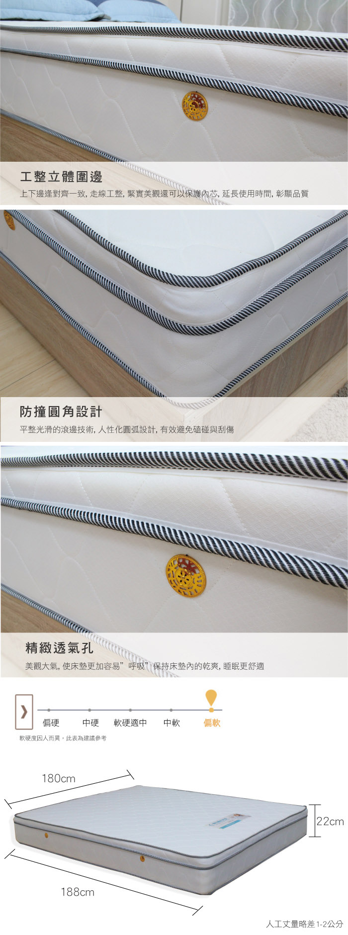 尺寸說明:單位/CM:寬180 /深 188/ 厚22 其他尺寸請參考圖片