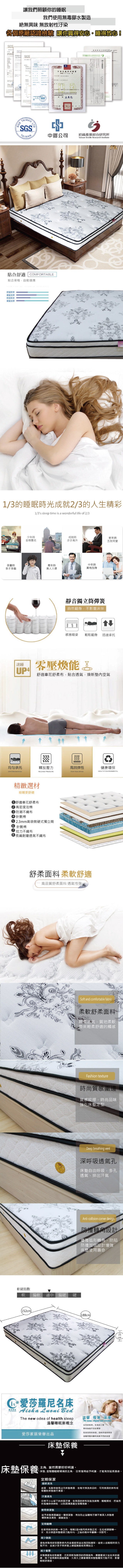 材質說明:立體車花.舒柔布.2.3MM硬式獨立筒.
