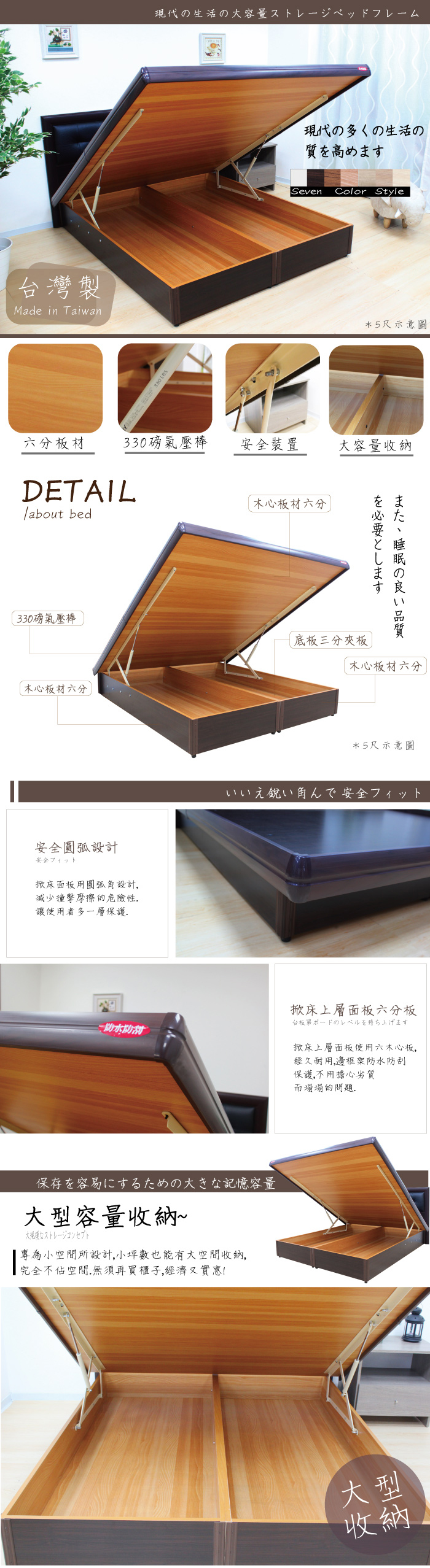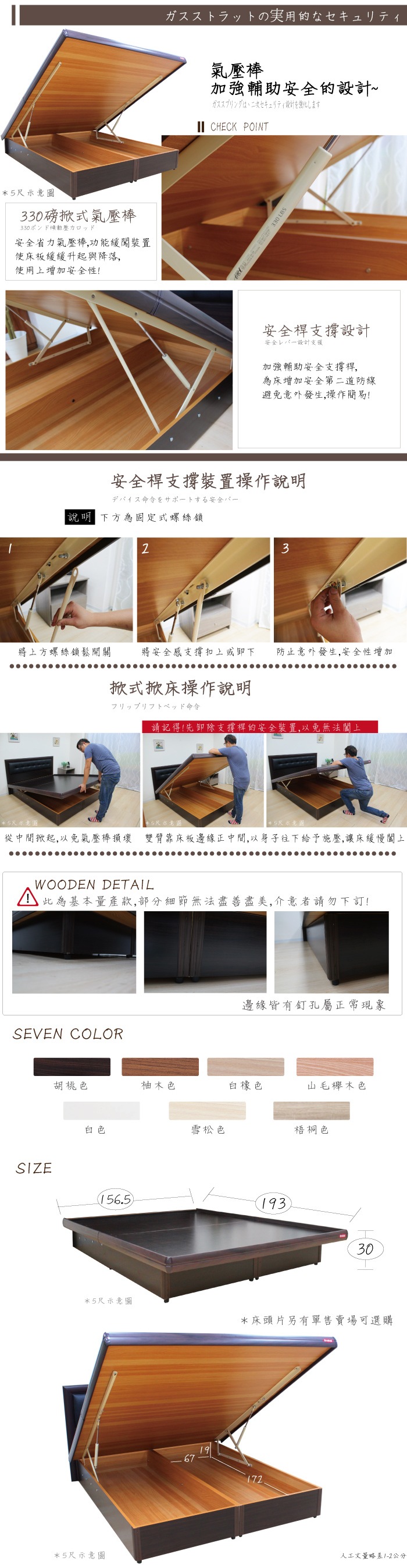 氣壓棒加強輔助掀床安全裝置的設計,330磅掀式氣壓棒,安全省力氣壓棒,功能緩闖裝置,使床板緩緩升起與降落,使用上增加安全性! 掀床安全裝置的安全桿支撐設計,加強輔助安全支撐桿,為床增加安全第二道防線,避免意外發生!